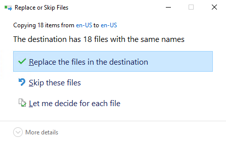 Next, I copy and replace the adml-files from the en-US folder to PolicyDefinitions\en-US” folder. I replace the existing files.