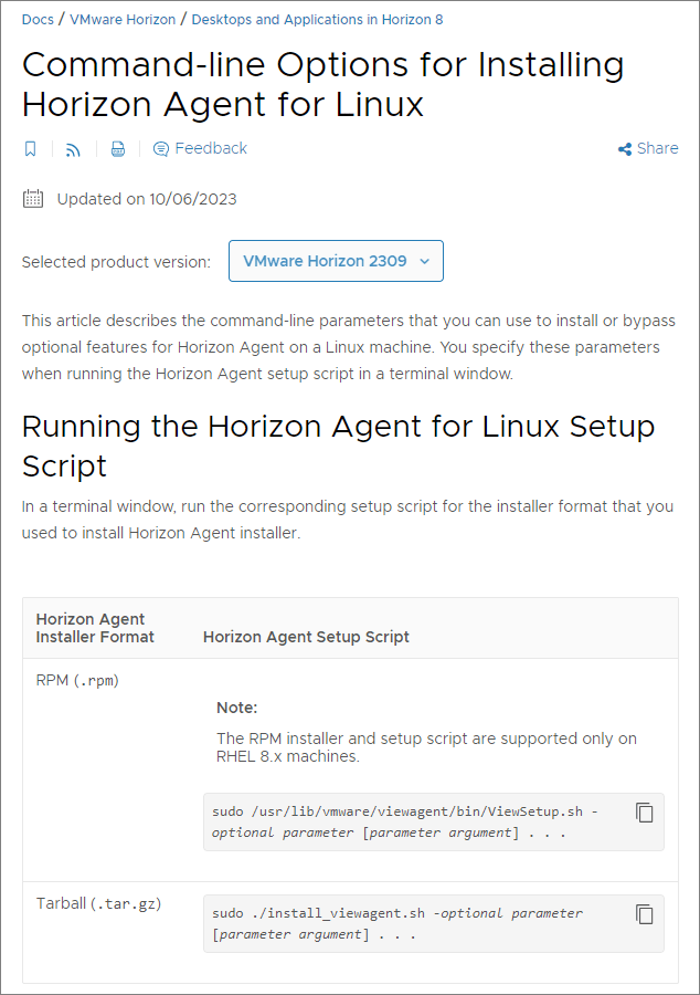 Welcome to my VMware Horizon series. In this session I will describe how I upgraded the VMware Horizon Linux Agent in my template to v. 2309. According to the VMware Horizon 8 2309 Release Notes, these are the changes to the Horizon Linux Agent: