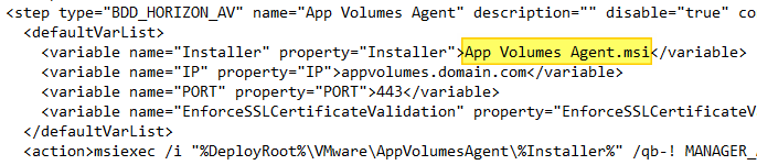 As I mentioned above, the App Volumes Agent isn’t referenced to with a version or build, so the installer properties doesn’t need any adjustments.
