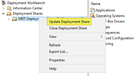 The final task I have to complete, is to Update the Deployment Share.