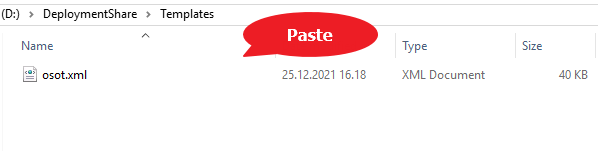 Next, I copy and replace the osot.xml template file to: “D:\DeploymentShare\Templates”