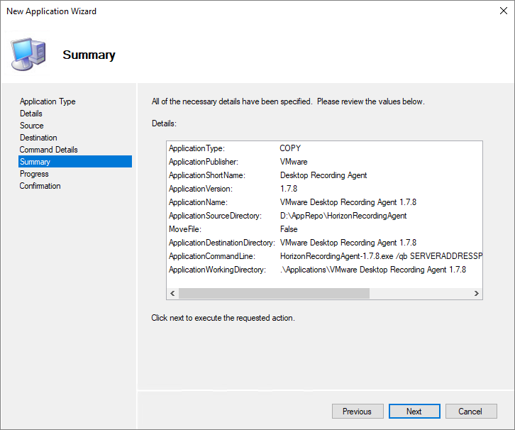 As I have previously described this here, VMware Horizon – Install and Setup Desktop Recording Server & Agent, I wont go into details but do a quick run through with the screenshots below. I open Deployment Workbench MMC and go through the “New Application Wizard“