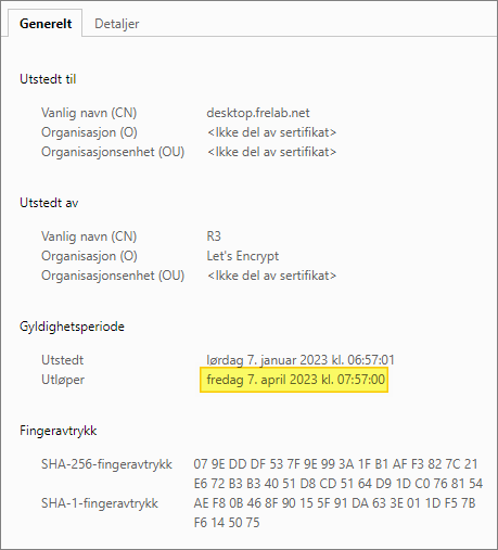 Welcome to my VMware Unified Access Gateway series. This topic will show how to renew the TLS certificates. As I’ve show earlier, I use a HAProxy loadbalancer in front of my UAG’s with a LetsEncrypt certificate. From time to time, this certificate has to be renewed. In this session I will do a walk-through of this procedure. Before I start, I verify the expiration date on the certificate. As we can see, this certificate expires on April 7th 2023.