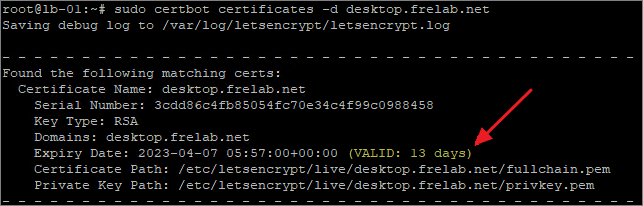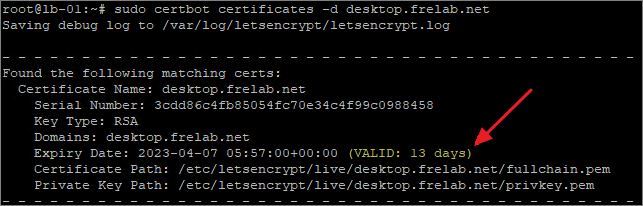 sudo certbot certificates -d desktop.frelab.net