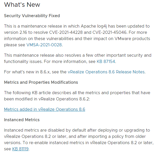 Welcome to my vRealize Operations Manager series. vRealize Operations 8.6 was GA on Oct 12th 2021 and is as a major release looking at the long list of new features and enhancements available. The maintenance release v. 8.6.2 was released on Dec 21st 2021, which addresses some security vulnerabilities and also some performance issues. From VMware’s official Release Notes we can read what’s new in this version.
