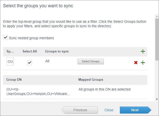 I’m now prompted to add Groups from Active Directory to Workspace ONE Access. I click the plus sign…Next…