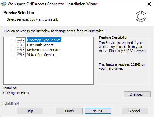 At this point in the installation, I can choose which services to install. If this was an enterprise setup, setting up multiple connectors behind load balancers, running separate services, would be recommended, in order to get HA and scalability. But as I’m doing a small lab set up, I will be installing all services on only one server.