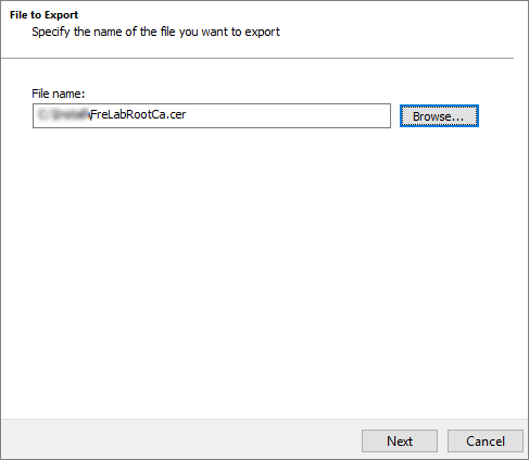 I can now browse and select the Root CA certificate i exported to begin with, Next…