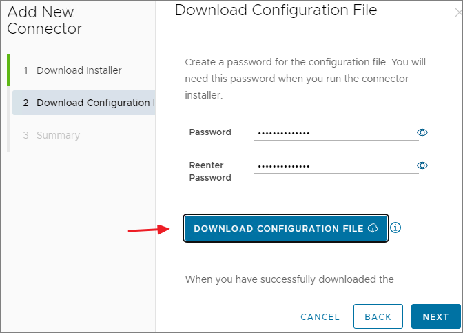 I enter a password for this configuration and click Download Configuration File, when done, Next…