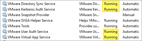 Once the installation is finished, I check Services.msc and see that the Directory Sync, Kerberos Auth, User Auth and the Virtual App Service is started.