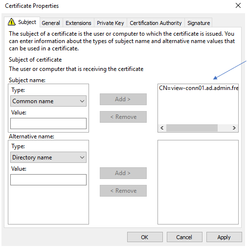 I restart the server to update the certificate-change. When my first connection server comes up, I perform the same procedure for my second connection-server, only with a different appropriate common name