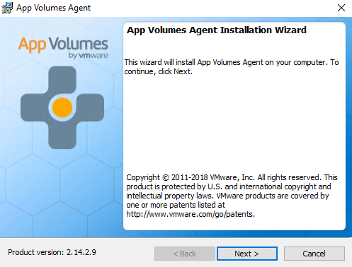 I will continue with installing VMware UEM Agent, I double-click the installer file to start the wizard, Next
