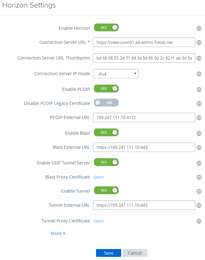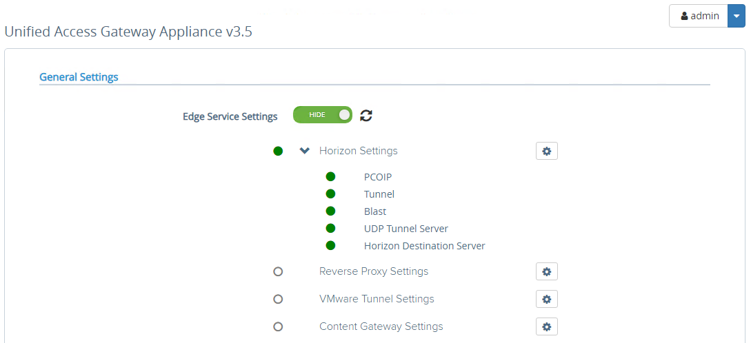 If I click show on the Edge Service Settings, I can verify my Horizon Settings