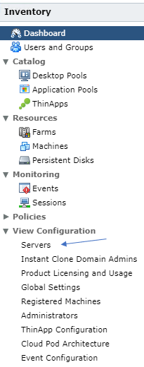 I also register this UAG as a gateway in Horizon. In the Servers-section under View Configuration, I add this UAG under Gateways.