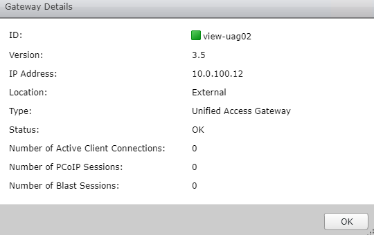Once the UAG is connected and communication established, it will turn green and I can verify the gateway details