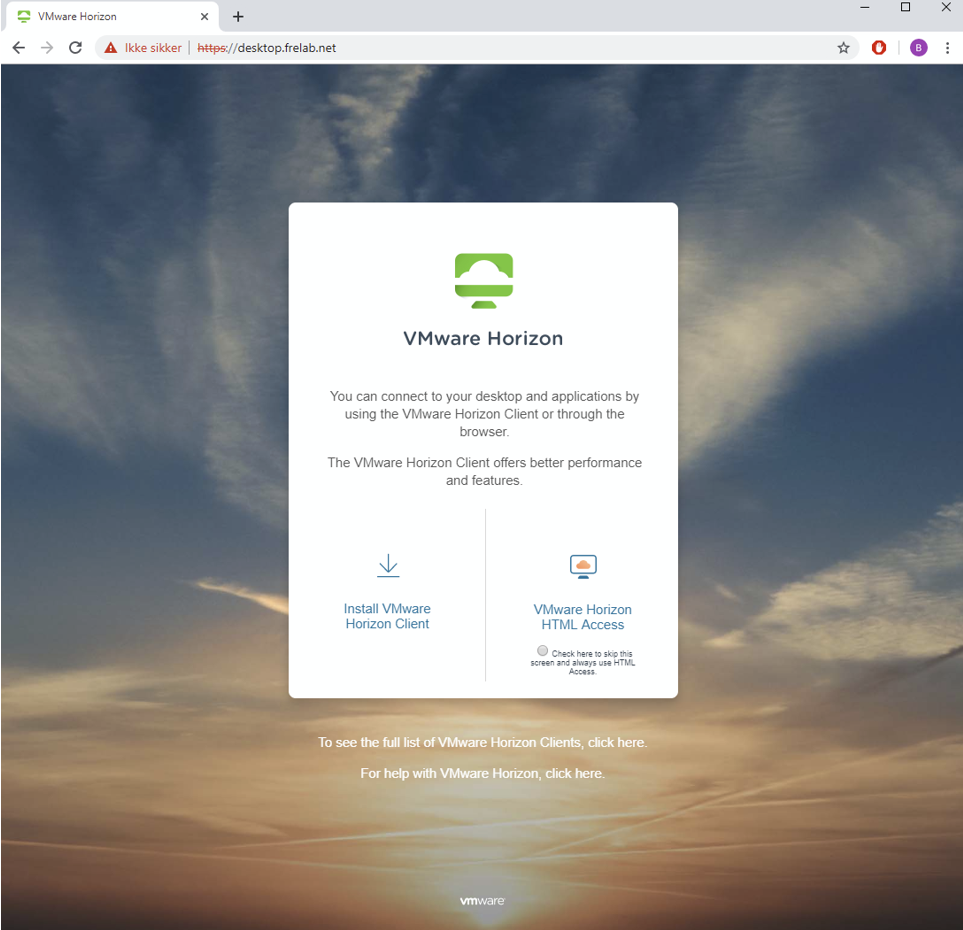 Finally, I will test my UAG by logging on from outside my lab. As I don’t have any certificates configured yet, there will be an error on the Horizon web-page