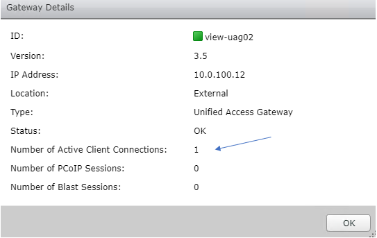 In Horizon Administrator I can verify that I’m connected to UAG02