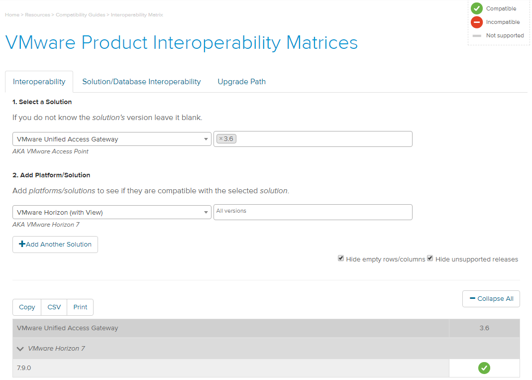 Second, when I check VMware Product Interoperability Matrices, I see that UAG 3.6 is only compatible with Horizon 7.9, which is OK for me as I only use UAG for Horizon pr. now.