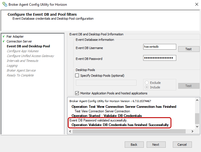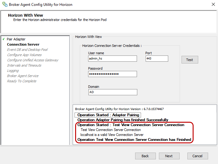 I enter my Horizon Server credentials, click Test and when the test is successful, I click Next…